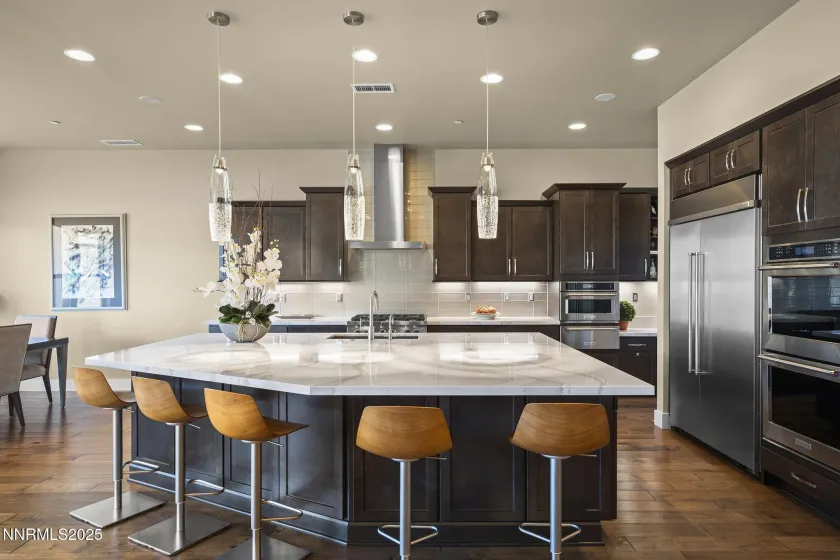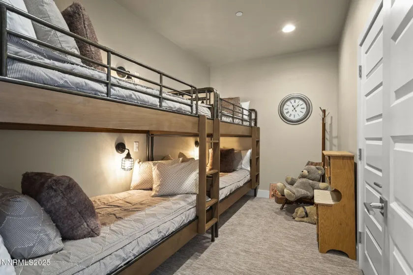 A masterpiece of multigenerational NEW luxury in the custom home community of serene Caughlin Ranch. Step into a residence where every detail has been thoughtfully curated and little expense spared. Tucked in a quiet cul-de-sac in one of Upper Caughlin Ranch’s most coveted neighborhoods, this home is truly two-in-one—crafted for multigenerational living while delivering the highest level of luxury, technology, and comfort., The lower level functions as its own private home. It features a full kitchen suite (minus oven/range), three bedrooms, a bunk room, three bathrooms, its own laundry room, separate HVAC system, and private entrance—an ideal layout for extended family, guests, or live-in support. Bonus features include a finished mechanical/storage room with 160 sq ft of usable space and an expansive crawl space reaching up to 8 ft tall for extra storage. Upstairs, the heart of the main level is a chef’s dream kitchen. A striking 94″ x 123″ island offers both form and function—with a hidden play nook underneath for kids or grandkids. Top-tier KitchenAid appliances include dual ovens, a deluxe built-in fridge, warming drawer, six-burner gas range with Tephy hood, and a pebble ice machine. A large specialty sink with a touchless faucet, under-cabinet lighting, built-in workspace, and full butler’s pantry with cabinetry, sink, and disposal ensure this kitchen is as practical as it is beautiful. Adjacent to the living space, the primary suite offers a tranquil retreat. Heated floors, dual vanities, separate his-and-hers closets with built-ins, a soaking tub, and a spacious shower with bench and designer tilework create spa-like comfort. A private office nook with a sleek glass pocket door adds functionality, while Hunter Douglas blackout, reversible shades offer rest and privacy. Smart living is built in. The Control4 system powers integrated surround sound, Lutron shades, Honeywell Pro Series thermostat, and a full security system with indoor/outdoor cameras. Nearly every aspect of the home—lights, sound, shades, and more—can be managed from your phone or tablet. Design details continue to impress. Custom steel stair railings, stair lighting, Hansgrohe fixtures, Toto toilets, velvet-touch paint, and Level 4 smooth finish walls add sophistication, while upgraded insulation ensures peace and quiet between living areas and the bedrooms. Even the garage stands out, with California Closets built-ins, epoxy flooring, full glass garage doors, and additional paver parking on the side of the garage—because you can never have too much space. Step outside to a beautifully manicured backyard, complete with a large patio, fire pit, rock feature, and deck for outdoor living. Rainbird sprinklers and defensible space offer added peace of mind and fire protection. Oversized windows frame sweeping mountain and landscape views from nearly every room, and soaring 10′-15′ ceilings fill the home with natural light. Located just half a mile from Caughlin Ranch Shopping Center and arguably the top-rated schools, this home offers rare privacy with unbeatable convenience. Luxury. Space. Smart Living. Privacy. Convenience. This home delivers it all—without the wait, cost, or complexity of building new. Come experience what it means to truly have it all.